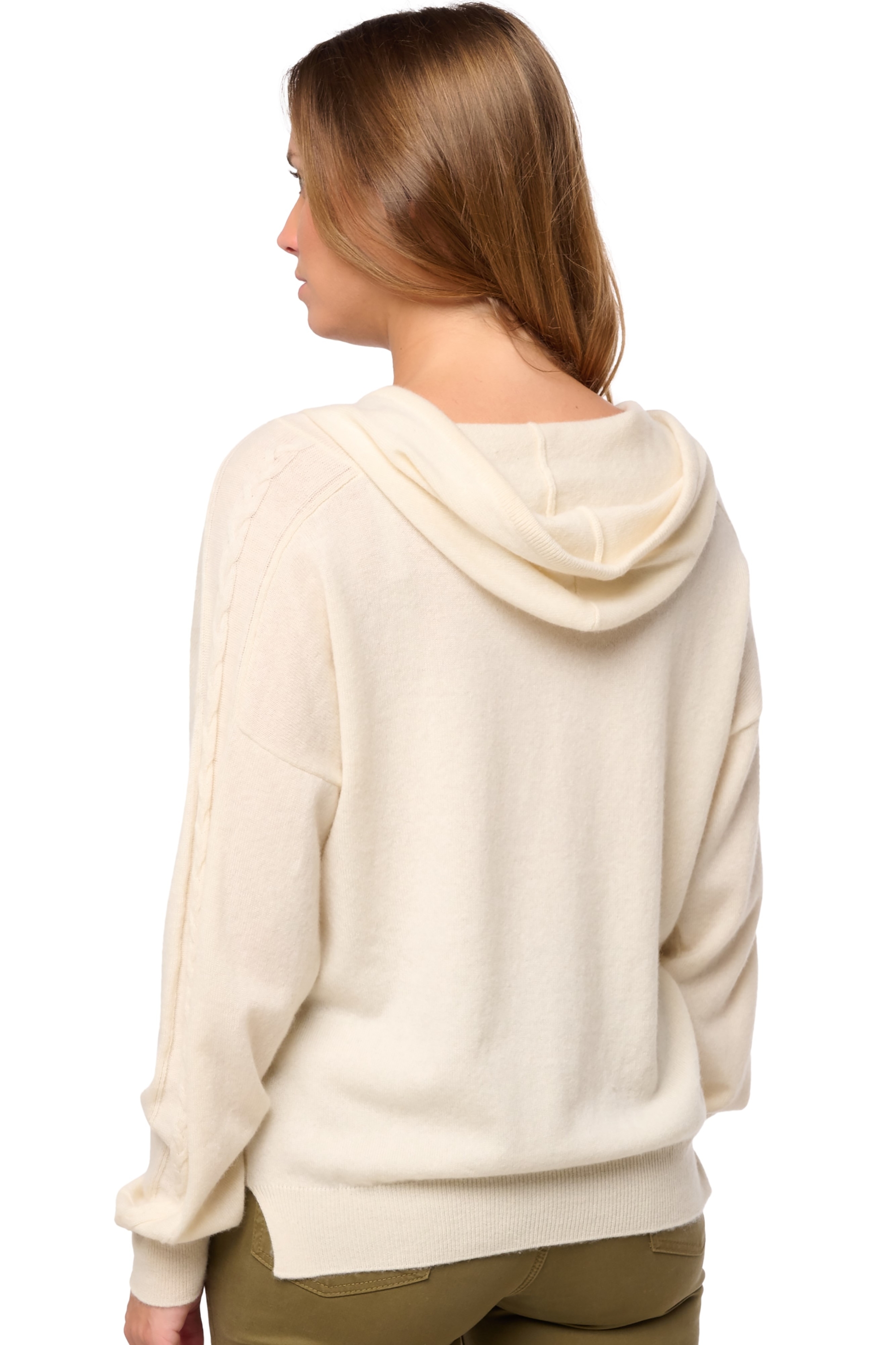 Superb hoodie in 100% cashmere with a decorative twist on the sleeves. For a sporty yet chic look to wear with DOLLY trousers.