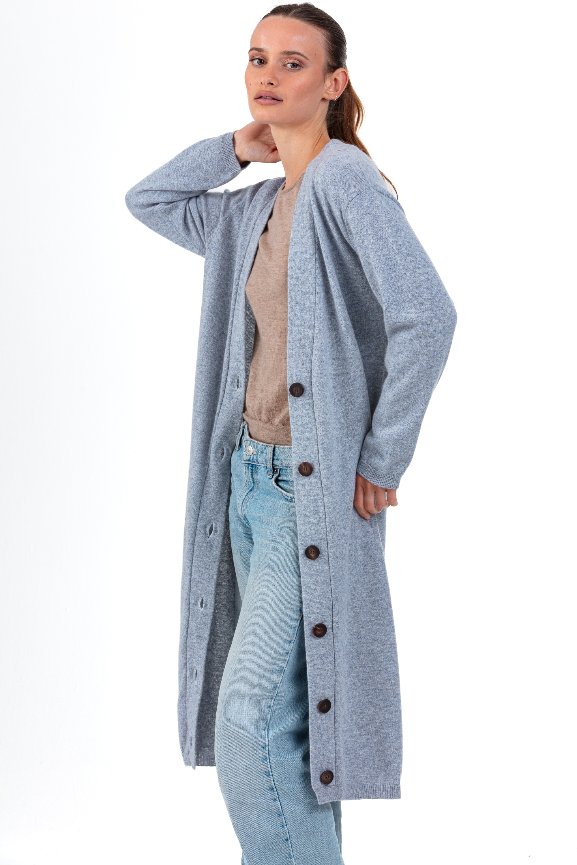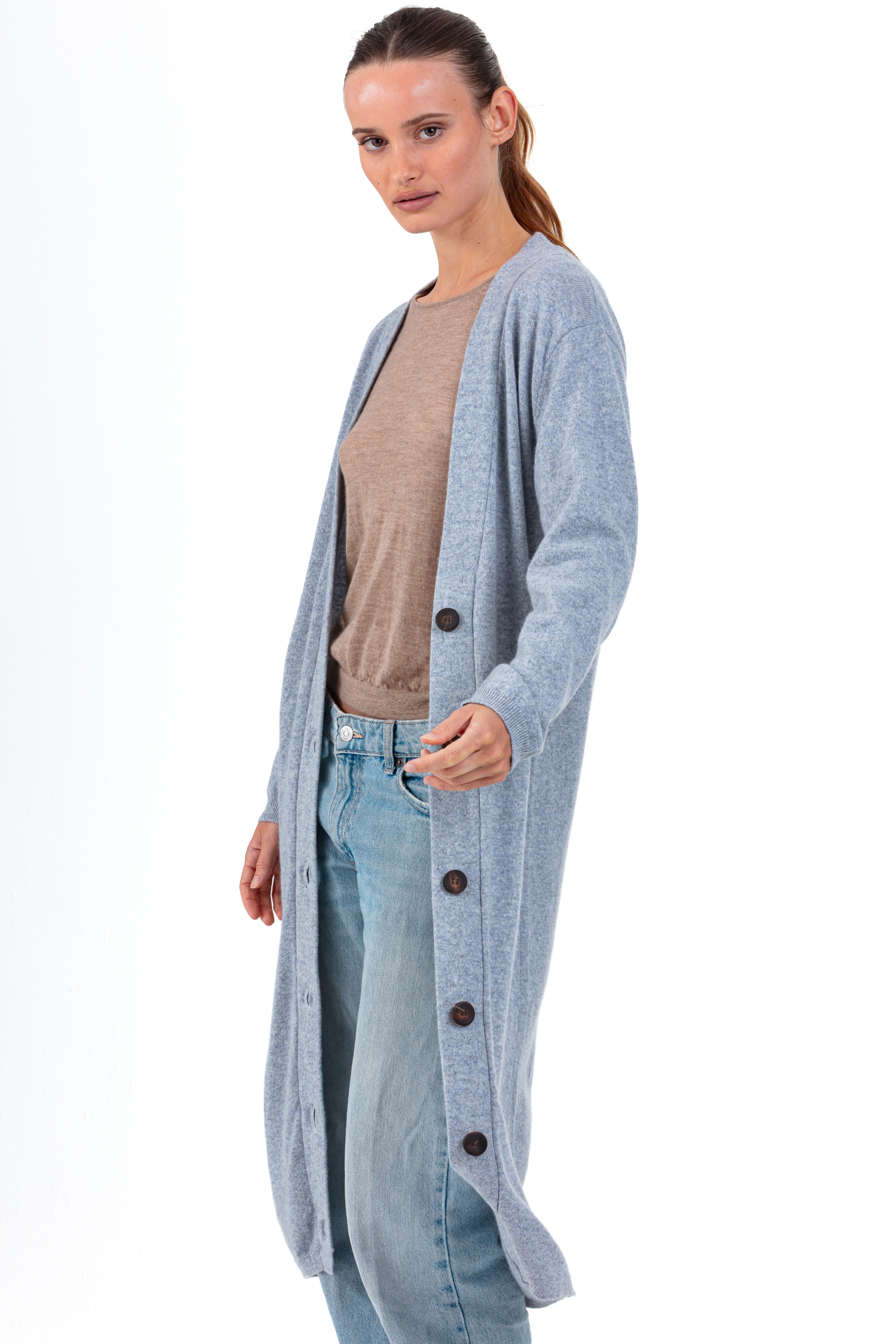 With its generous length and classic design, the RIMINI cardigan is a standout piece in any wardrobe. Knitted in 100% cashmere 2-ply, gauge 12, it features a loose, straight fit, a deep V-neck and an elegant style that flatters all body shapes.