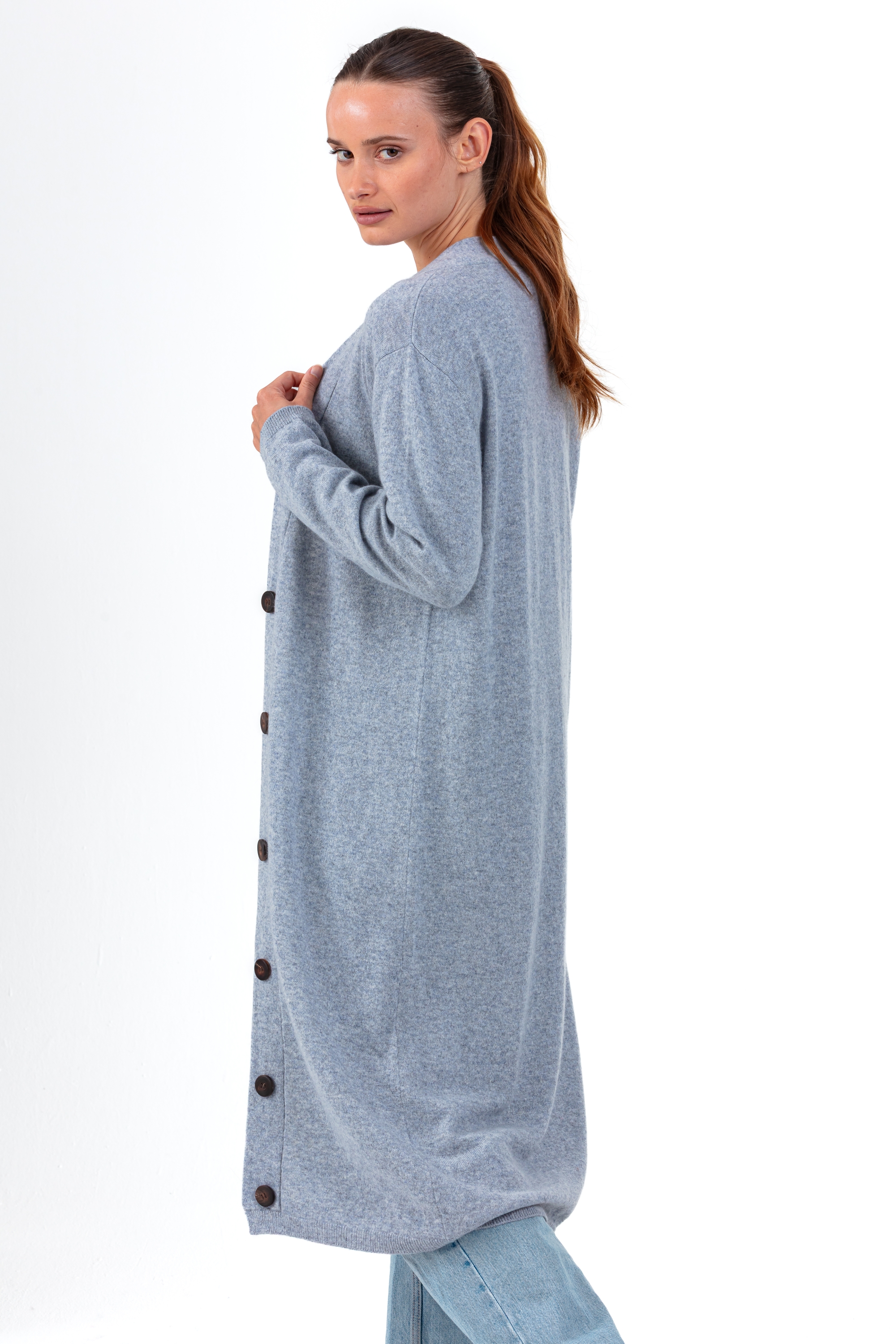 • Style: Extra-long buttoned cardigan