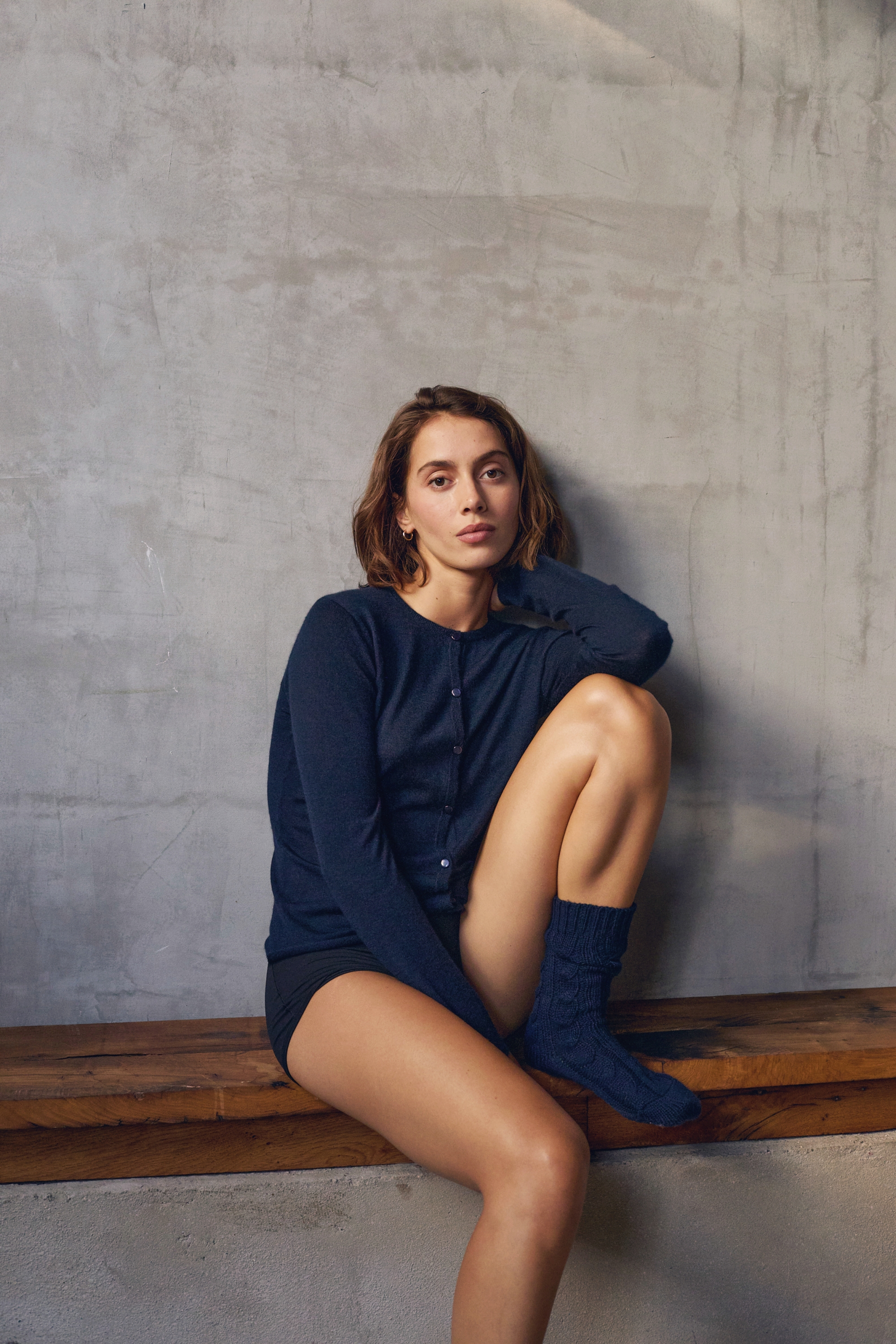 Delicate and timeless, the PISE cashmere down cardigan enchants with its finesse and incomparable comfort. Crafted in 100% cashmere down, it adopts the elegant cut of the Chloé model. With its round neck, long sleeves, and ultra-fine knit, it feels like a true second skin.