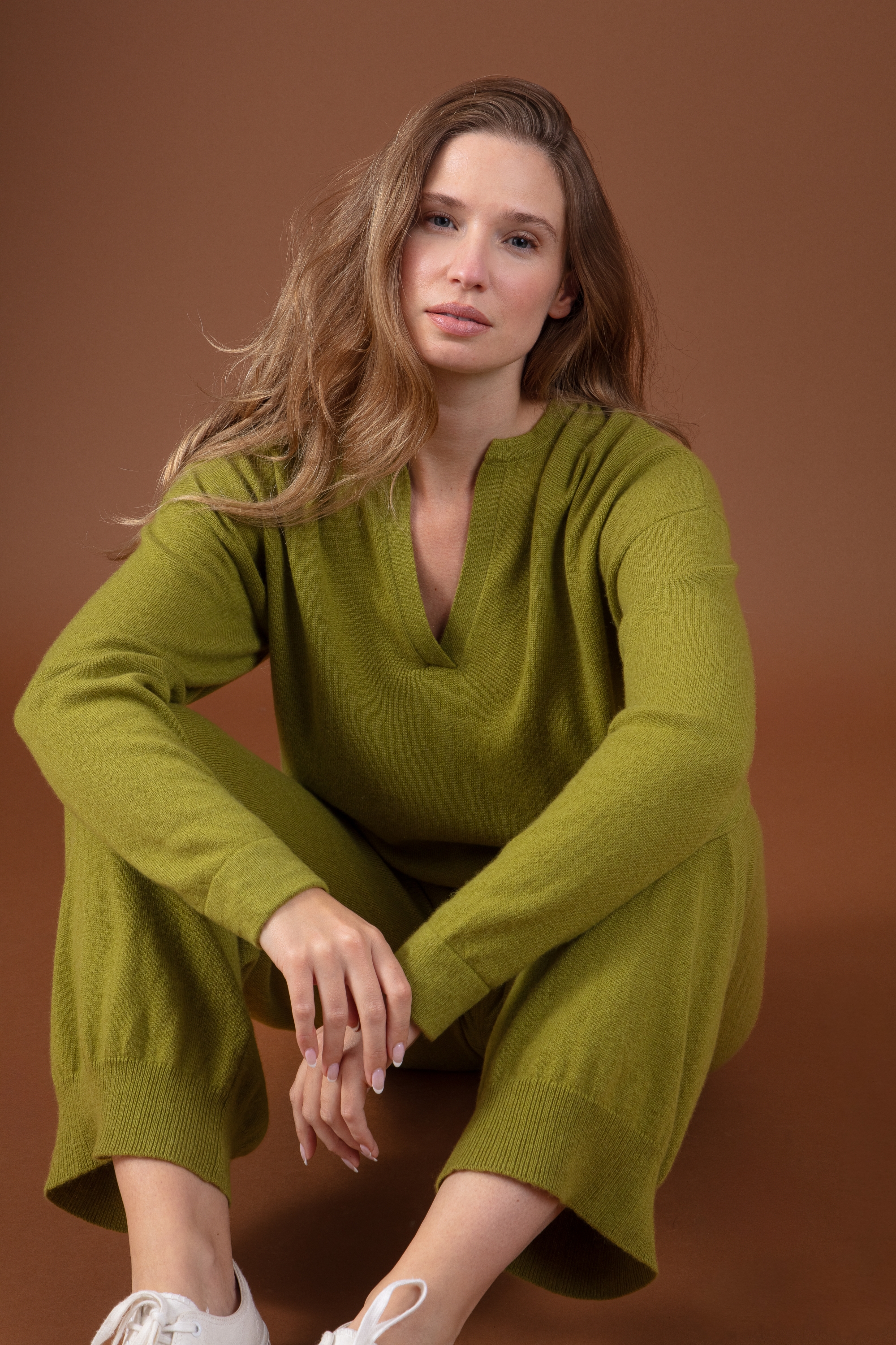 Knitted in 100% cashmere 2-ply, gauge 12, it features a straight and slightly loose fit for comfort without bulk. The discreet mao collar is enhanced by a 17 cm opening, adding a touch of refined detail.