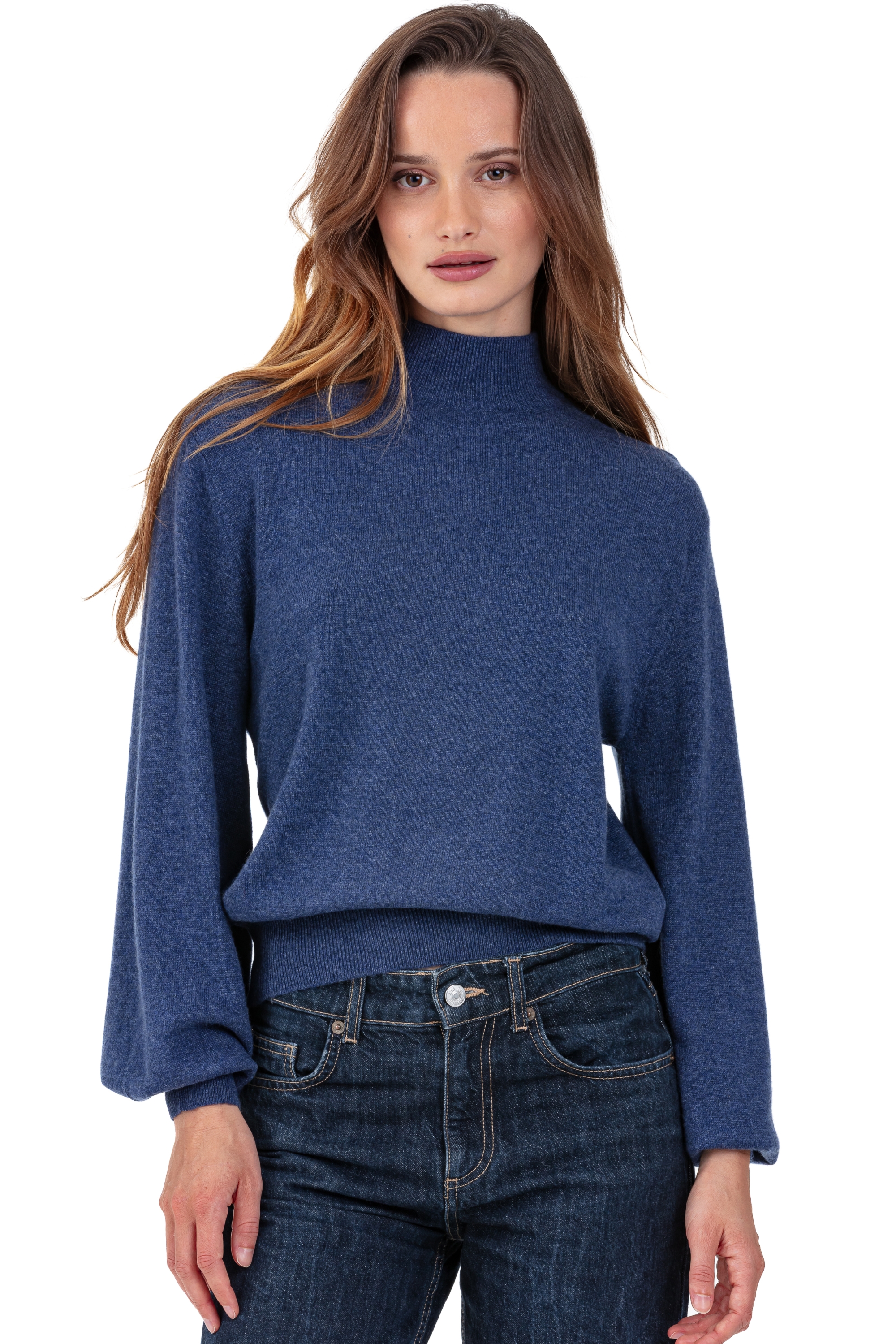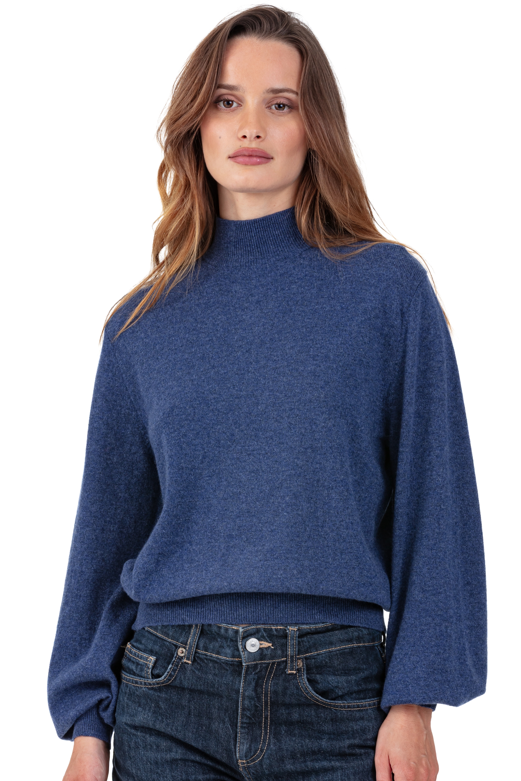 Feminine and refined, the PIA women’s jumper enchants with its sophisticated details. Knitted in 100% 2-ply cashmere, it combines lightness and softness. Balloon sleeves, inspired by the Deau model, and a funnel-style high collar, inspired by the Frédéric model, give it an elegant, modern allure. Its straight cut, slightly tightened at the hem, ensures balance and comfort.