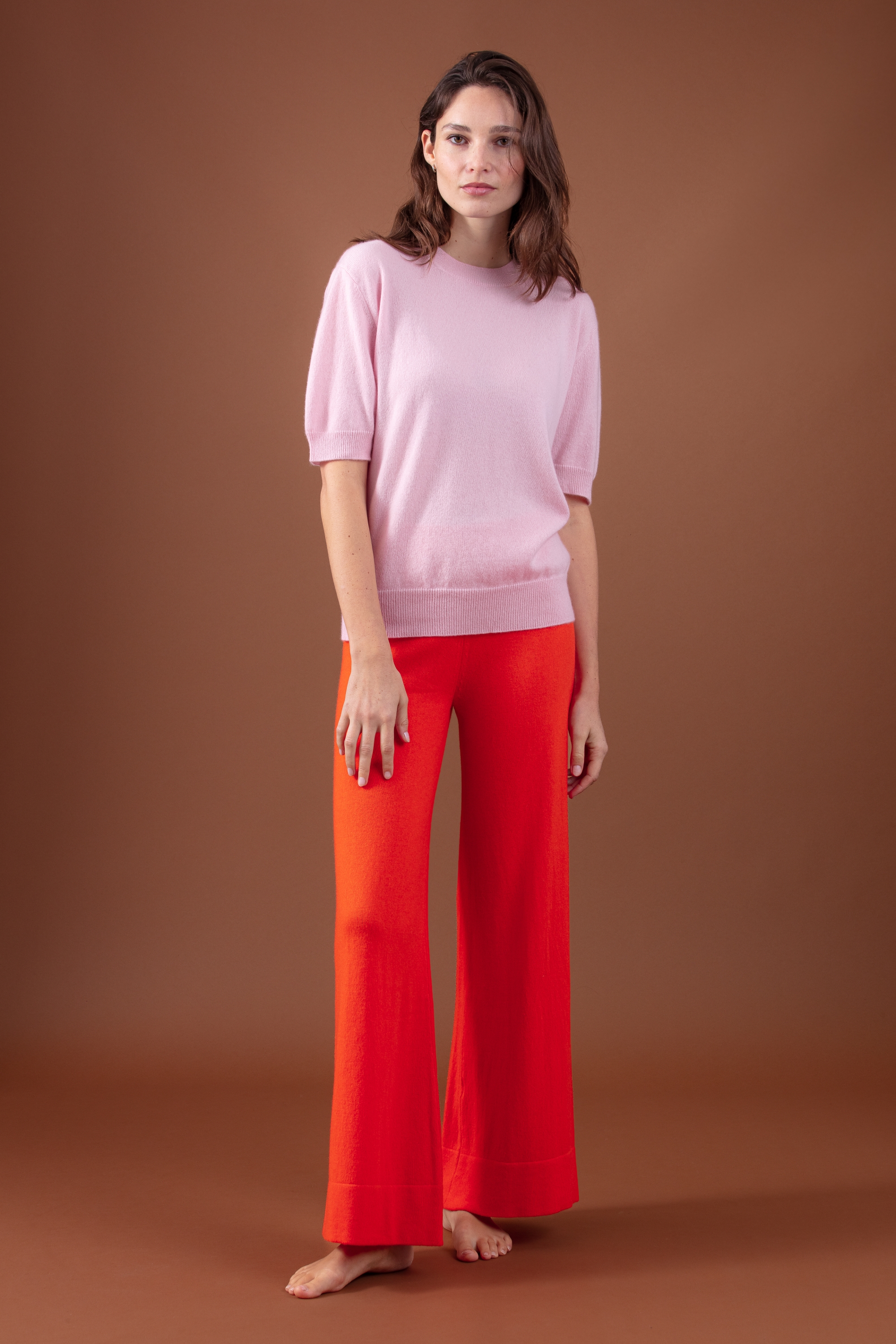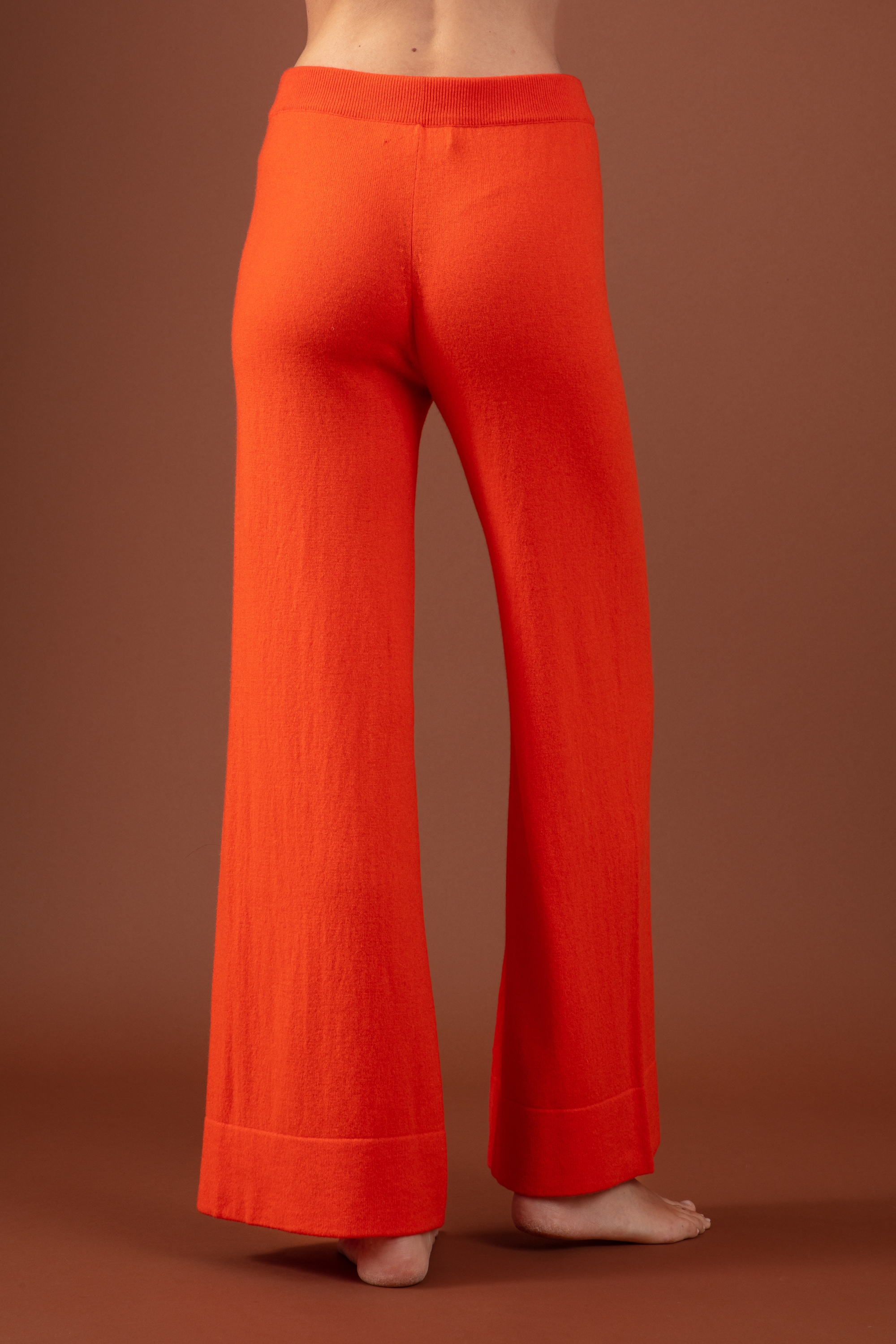 Straight-legged knit pants.