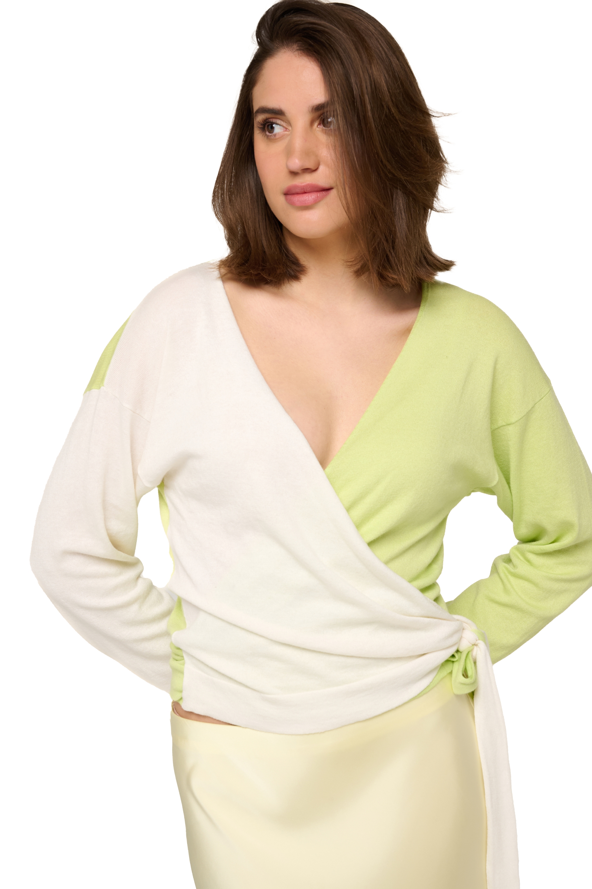 A modern twist on the classic wrap top, this two-tone cotton and cashmere top can be tied on the left or right, depending on the mood and colour you want to highlight. Ultra-soft, ultra-stylish - it instantly upgrades any look.
