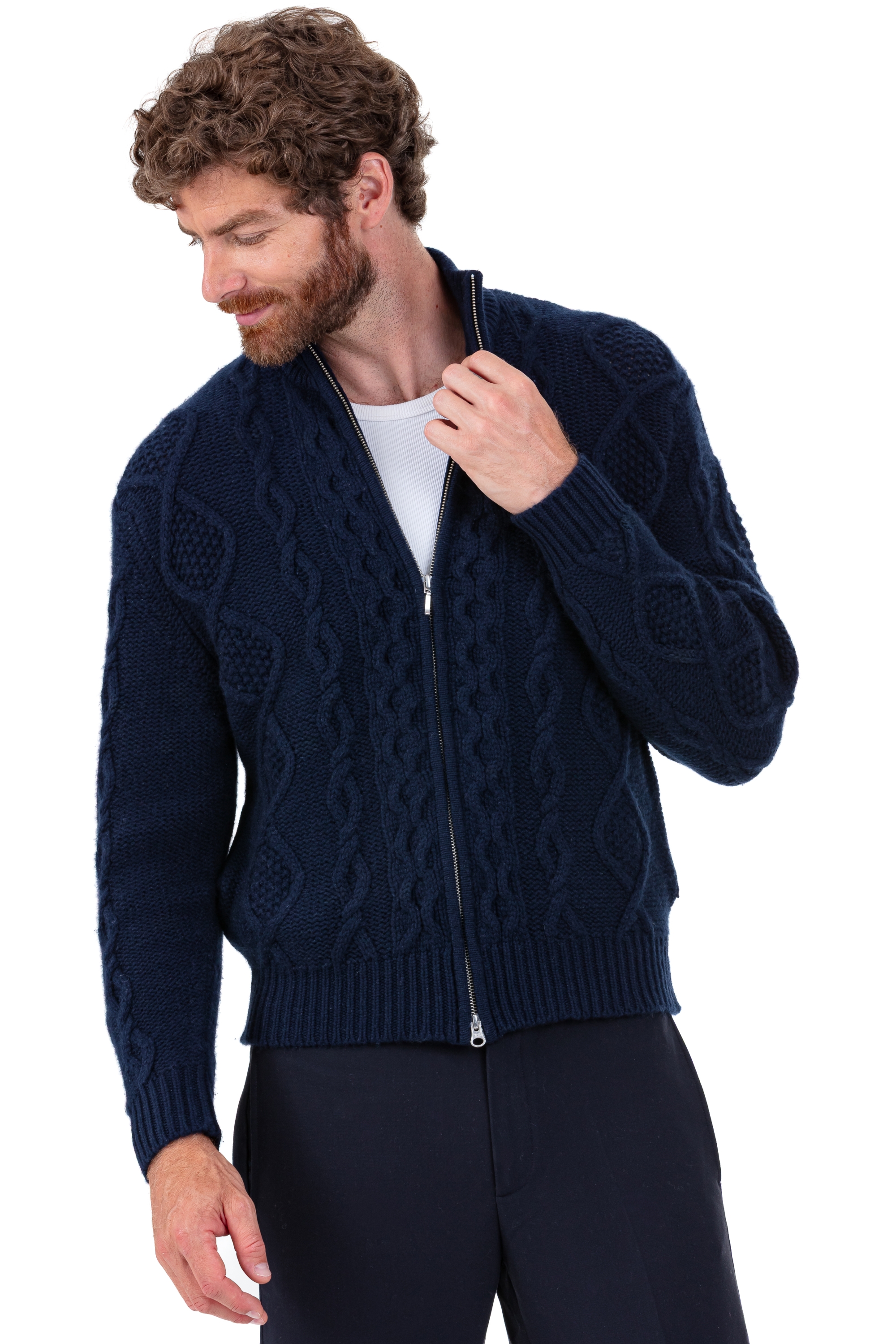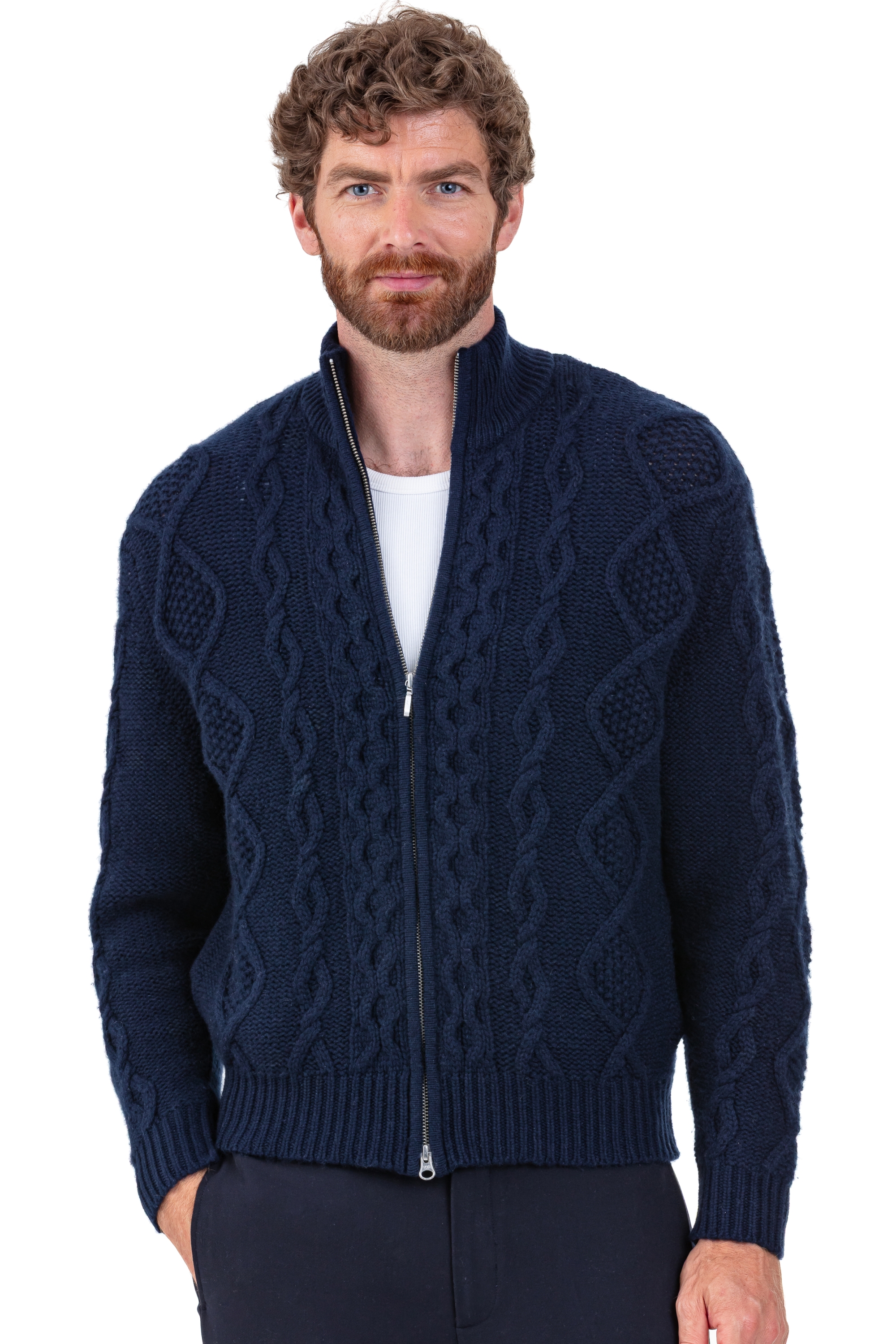 Original and refined, the PATMOS men’s cardigan enchants with its cable knit and stand-up collar. Knitted in 100% 10-ply cashmere, it provides both warmth and structure. Its double zip fastening and side pockets make it a practical yet elegant piece.