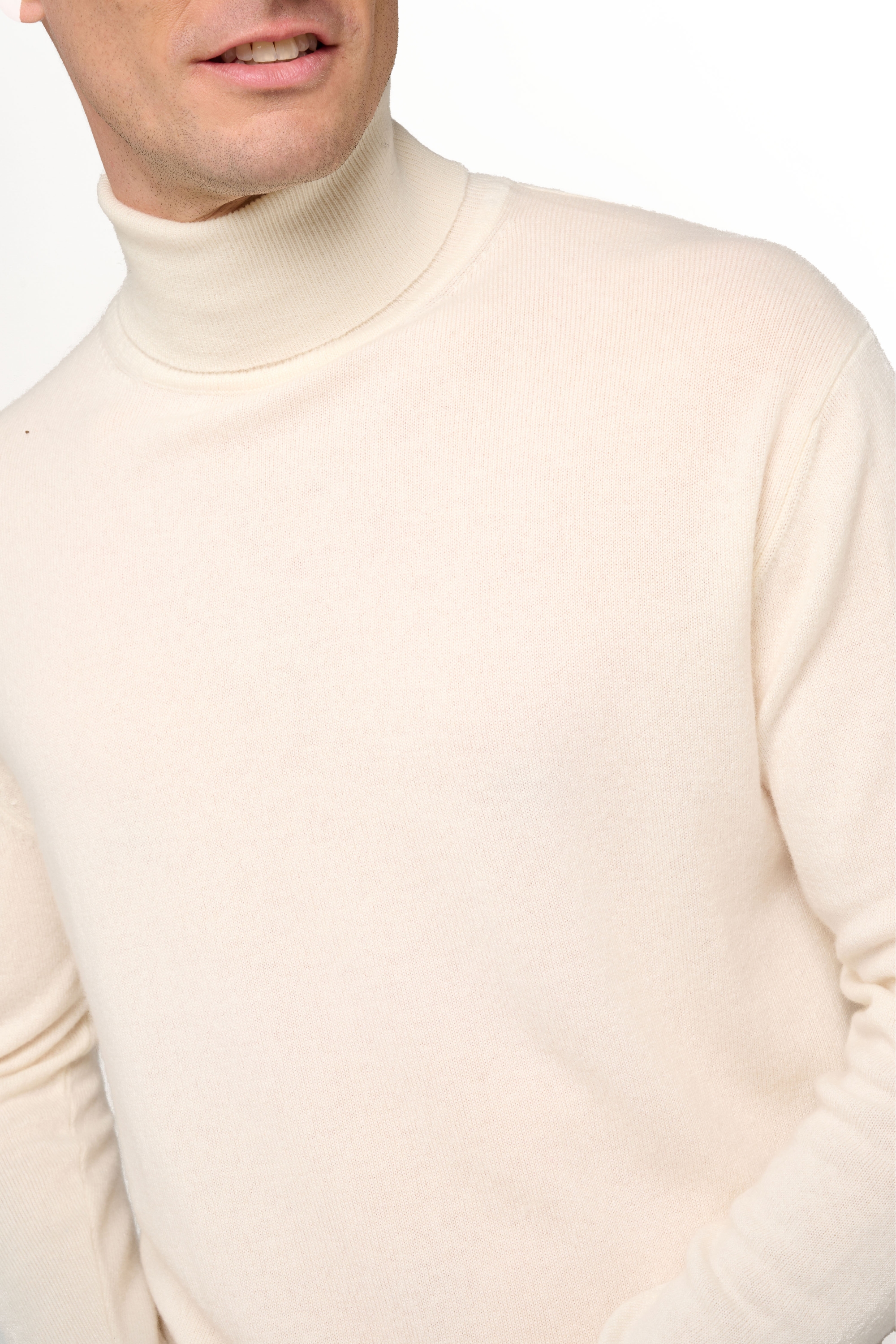 A fine knit sweater and incredibly soft. A perfect edging of 7 cm long on cuffs and hem gives a very elegant figure when worn with a suit or jacket.