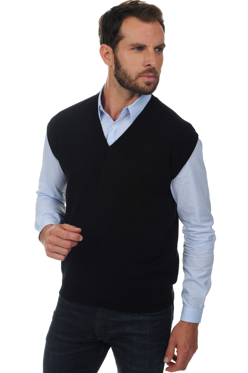 This garment is designed to be worn over a shirt and looks smart with corduroy trousers .